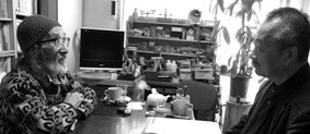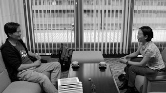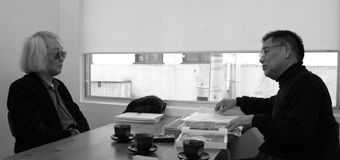 飯沢耕太郎さん(左)のインタヴューに答えるオノデラユキさん
