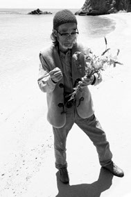 1982年夏。広島の市民団体20名が支援に来たとき島で開いた「ピカドン展」。全紙、半切、四切、280点、壁面40メートル。沖に見えるのは四国の島